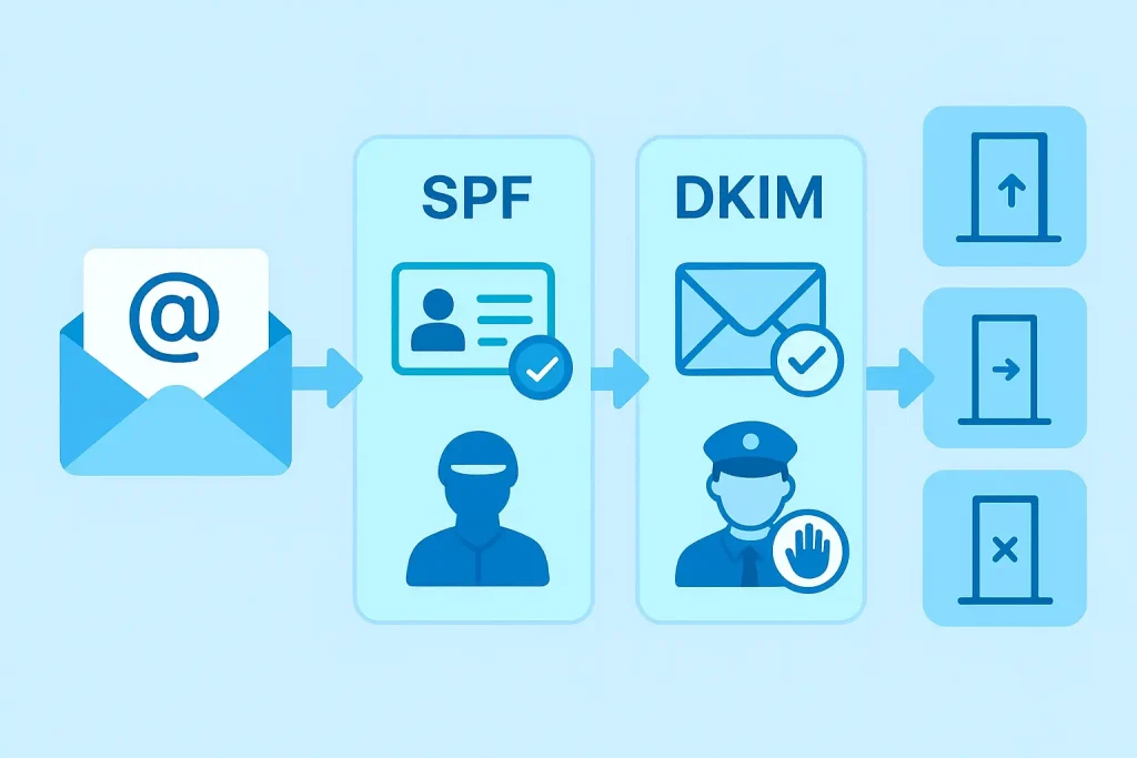 - How it works: When an email is received, the receiving server checks the sender’s domain, looks up the SPF record, and asks, “Is this sending IP address on the approved list?” If yes, it passes. If not, it fails.