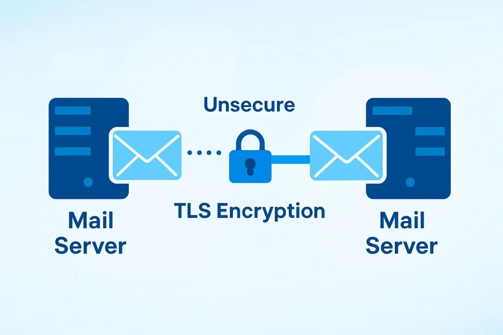 TLS creates an encrypted tunnel between mail servers. This ensures that while your email is in transit, it’s scrambled and unreadable to anyone except the intended receiving server.